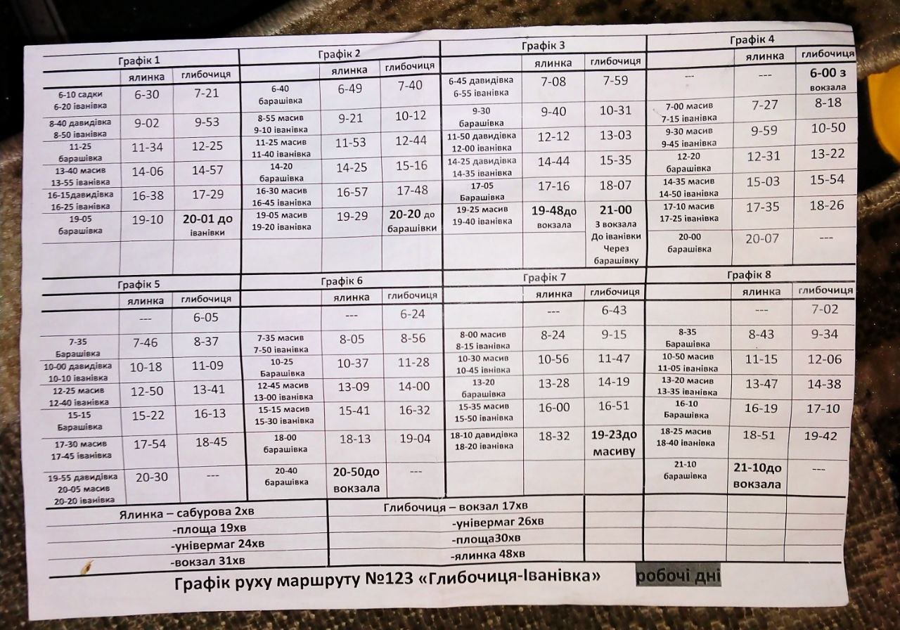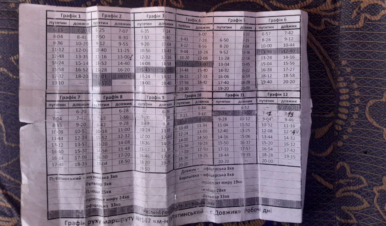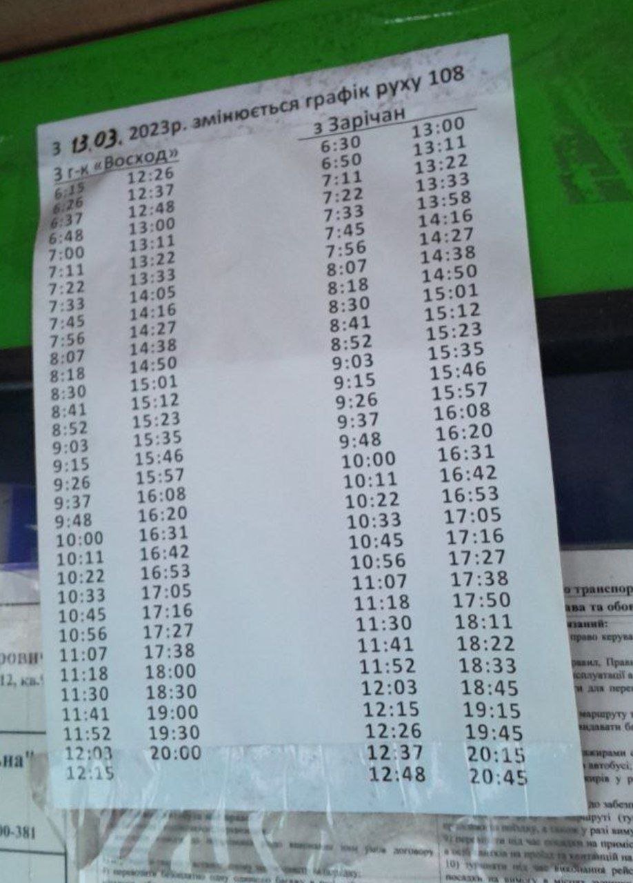 * - дані є орієнтовними та у будь-який момент можливі зміни. Інформація взята з графіків розміщених у салонах транспортних засобів, на зупинках, та на офіційних ресурсах у мережі інтернет. Дані востаннє було оновлено 15.02.2025.