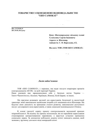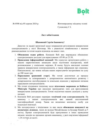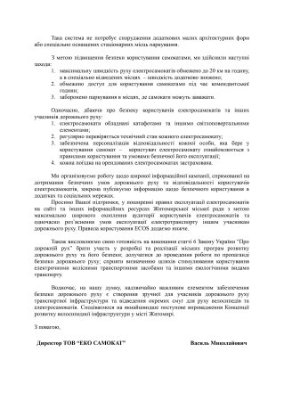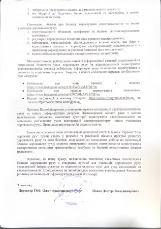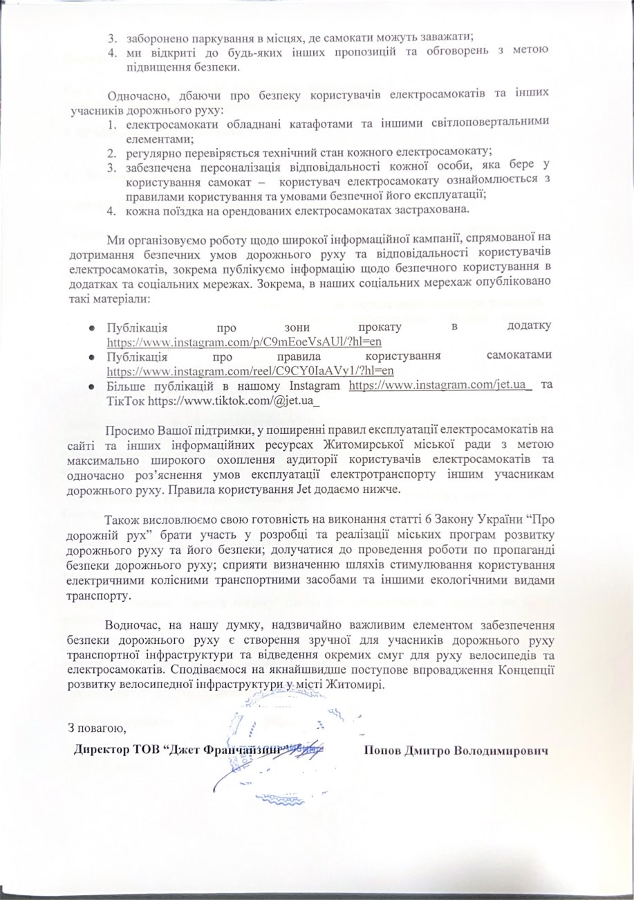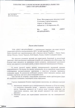 Оператори прокату самокатів вже звернулися до міської ради Житомира з листами, в яких взяли на себе певні зобов’язання щодо використання та прокату електросамокатів.