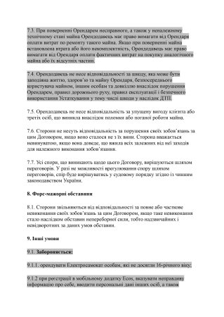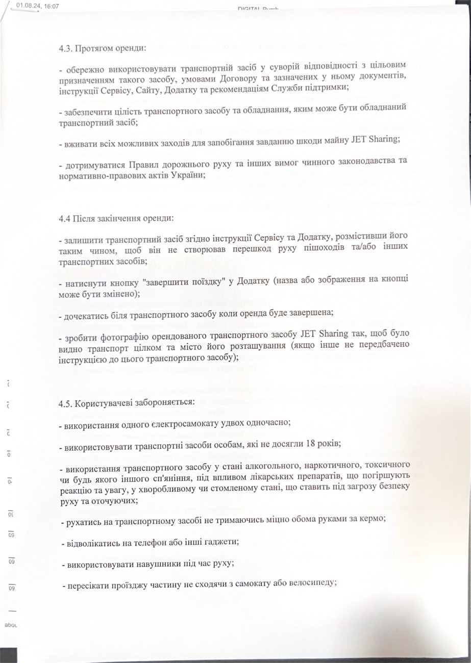 5. Персоналізація відповідальності: користувач підтверджує досягнення віку відповідальності, і в разі ДТП несе повну відповідальність.
