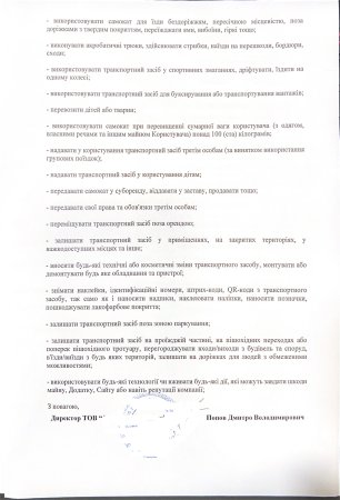 3. Обмеження паркування: заборонено паркування самокатів у місцях, де вони можуть заважати, зокрема на тротуарах і проїжджій частині.
