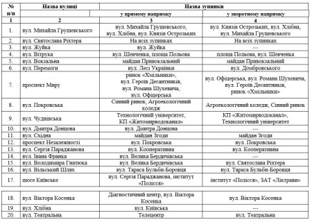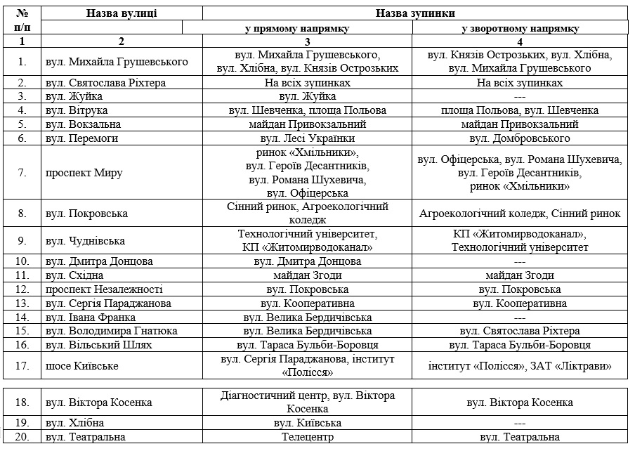 Житомирський виконком затвердив новий перелік зупинок для приміських автобусів
