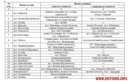 Зміни стосуються тих центральних вулиць, де курсує найбільша кількість громадського транспорту, — Київської та Великої Бердичівської.