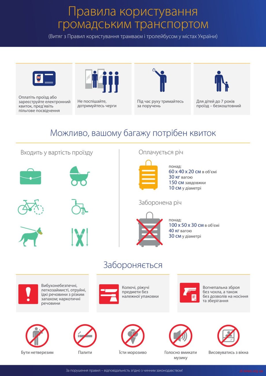 Раніше в цьому питанні можна було керуватися Наказом Міністерства будівництва, архітектури та житлово-комунального господарства України № 329 від 09.10.2006 року, який затверджував «Правила користування трамваєм і тролейбусом у містах України». Однак, цей наказ втратив чинність згідно з Наказом № 227 від 23.10.2017 року.