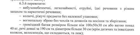 У пункті 6.3.6 зазначено заборону на перевезення великогабаритних речей, зокрема багажу розміром більше ніж 100х50х30 см або вагою понад 40 кг, а також речей довших за 190 см і діаметром понад 30 см. Однак із цього правила є виняток для дитячих та інвалідних колясок, велосипедів, що складаються та лиж. Таким чином, вочевидь, передбачається, що велосипед має бути у складеному вигляді, щоб його дозволили перевозити.