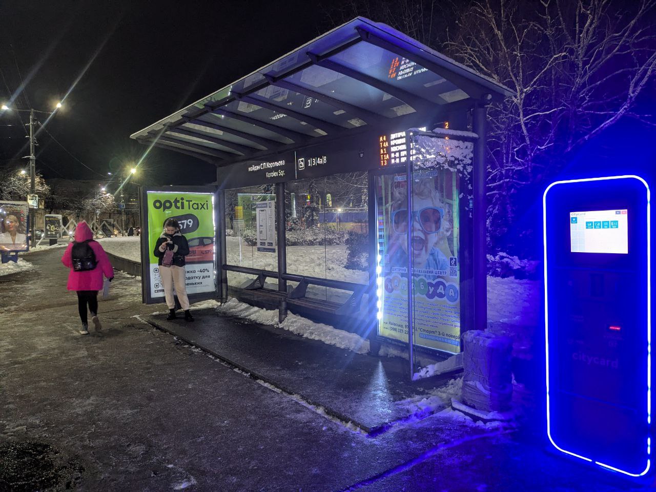 Він розповів, що зупинка поблизу міської ради була встановлена у 2014 році. Тротуар від місця розташування зупинки до проїжджої частини йде на схил, тому павільйон був встановлений на бетонне підвищення.