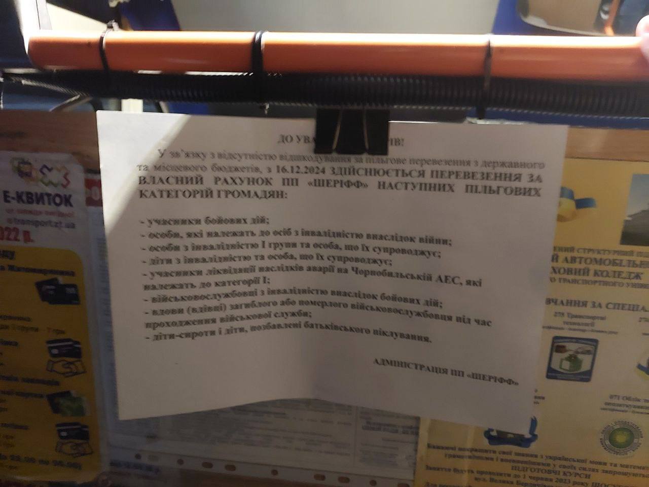 Попри попередні повідомлення про відмову від маршрутів №7, №8 та №18, перевізник ПП "Шеріфф" у понеділок, 16 грудня, все ж випустив автобуси на маршрути №8 (Праці – Параджанова) і №18 (Лісове – Затишшя). Розклад руху та кількість транспорту залишилися без змін, однак з’явилися нові оголошення, що перевізник за власний кошт перевозить лише 8 пільгових категорій на усіх маршрутах. У результаті ці маршрутки не курсували лише два дні.