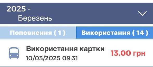 Інформація про поповнення та поїздки
