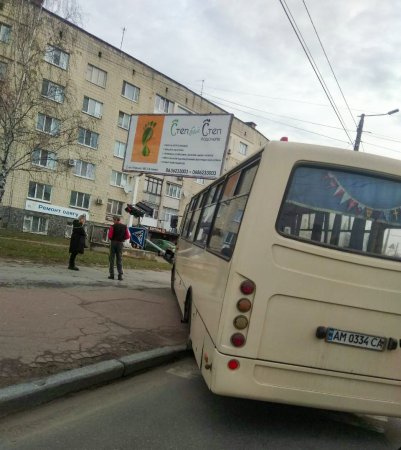 Громадський транспорт Житомира » Новини » У Житомирі маршрутка зіткнулася з світлофорною опорою: що відомо про аварію