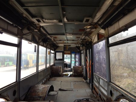 Салон тролейбусу ЛАЗ після спроби зробити ремонт