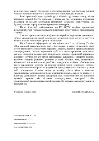 💁♂️ Коментар автора петиції: Ну, типова відповідь "все згідно чинного законодавства". Цей пункт був доданий мною як бажання бачити нових людей в керівництві транспорту міста.