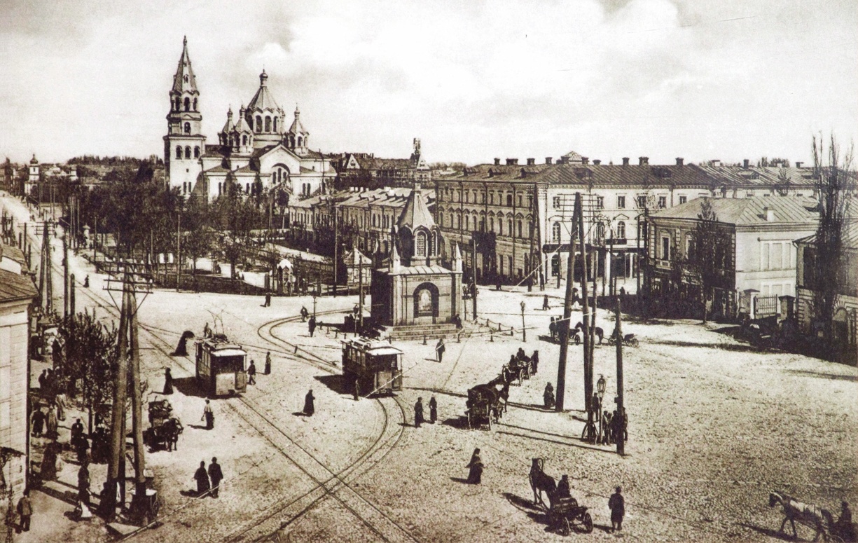 Головний трамвайний пересадковий вузол на Семінарській площі (майдан Соборний). Початок ХХ століття.