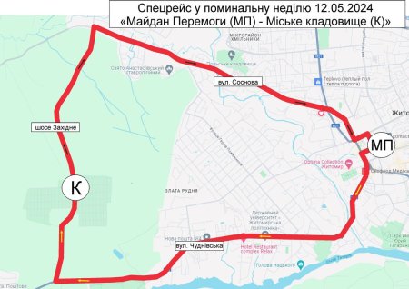 Щороку на Провідну неділю в Житомирі організовують додатковий спеціальний маршрут. Автобуси курсують від Майдану Перемоги до міського кладовища з інтервалом, який варіюється від кількох хвилин до 10 хвилин залежно від завантаженості транспорту.
