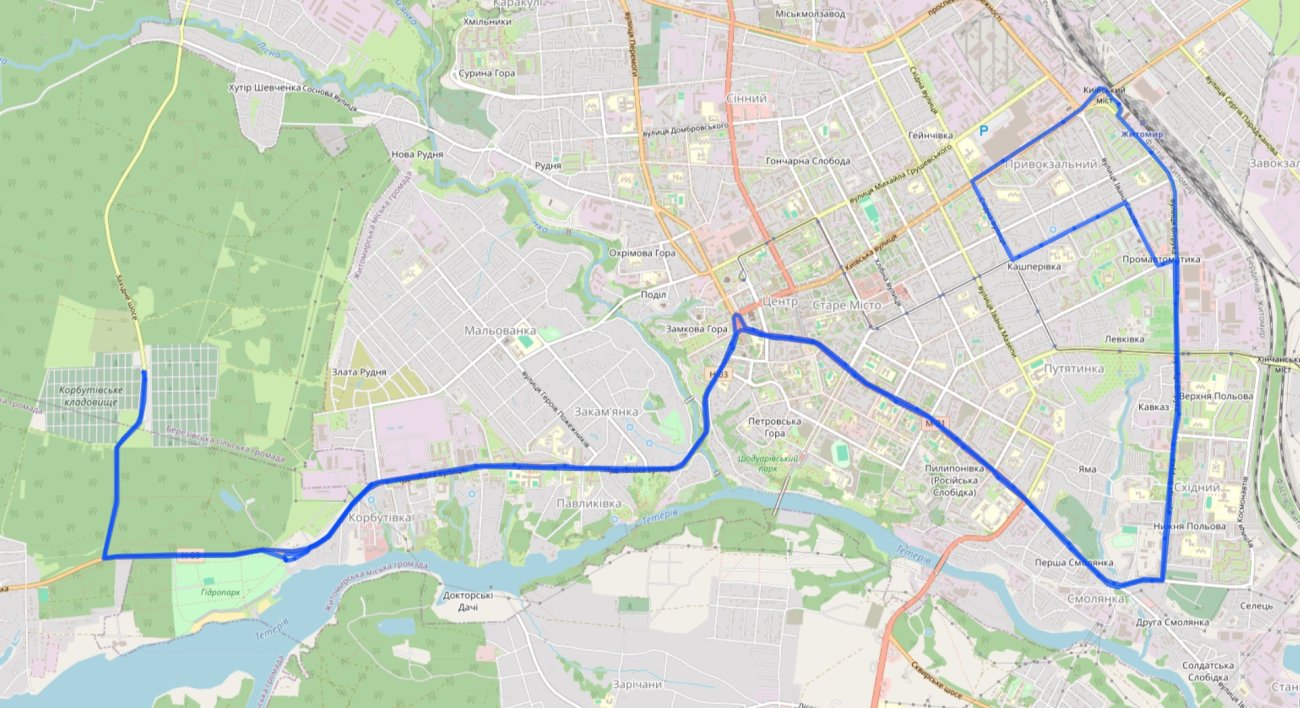 У зворотному напрямку автобус також проїжджає через міське кладовище, тож з Корбутівки можна легко дістатися до Західного шосе.