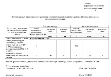 У Житомирі готують підвищення тарифів на проїзд у транспорті