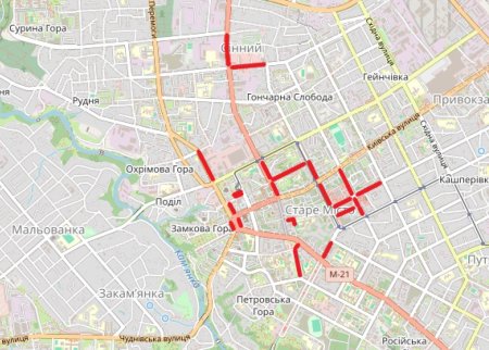 • вул. Небесної Сотні, на ділянці від вул. Київської до вул. Житній базар