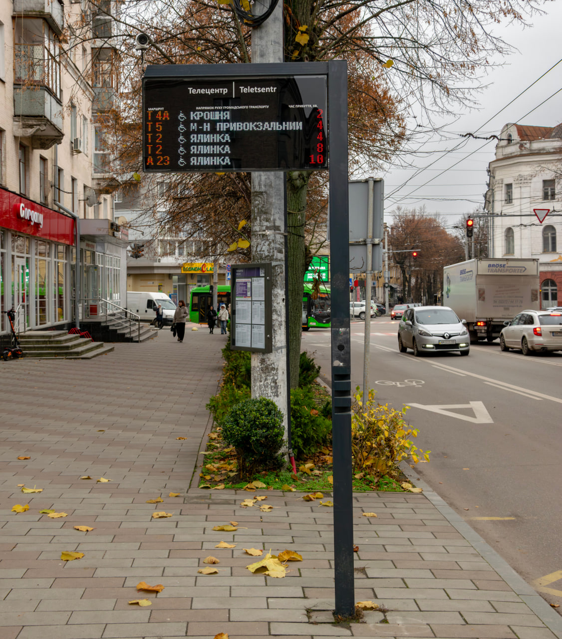 З 6 листопада на електронних табло, встановлених на зупинках громадського транспорту Житомира, відображається додаткова інформація.