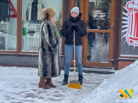 На робоче місце раніше прийшла і нотаріус Леся Кузьміна. О 8:30 вона вже розчищала сніг біля власного офісу.
