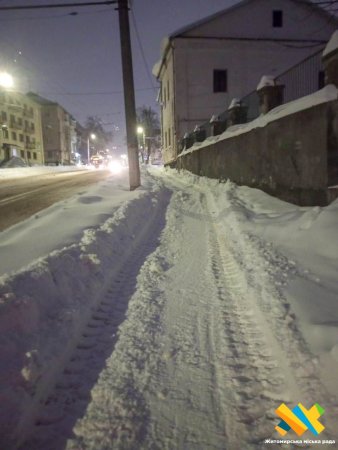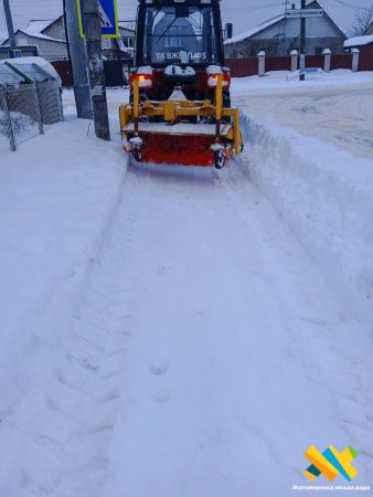 Тротуари міста прибирають і посипають понад 90 працівників підрядних організацій, задіяно 11 одиниць тротуарної техніки, повідомляють у Житомирській міській раді.