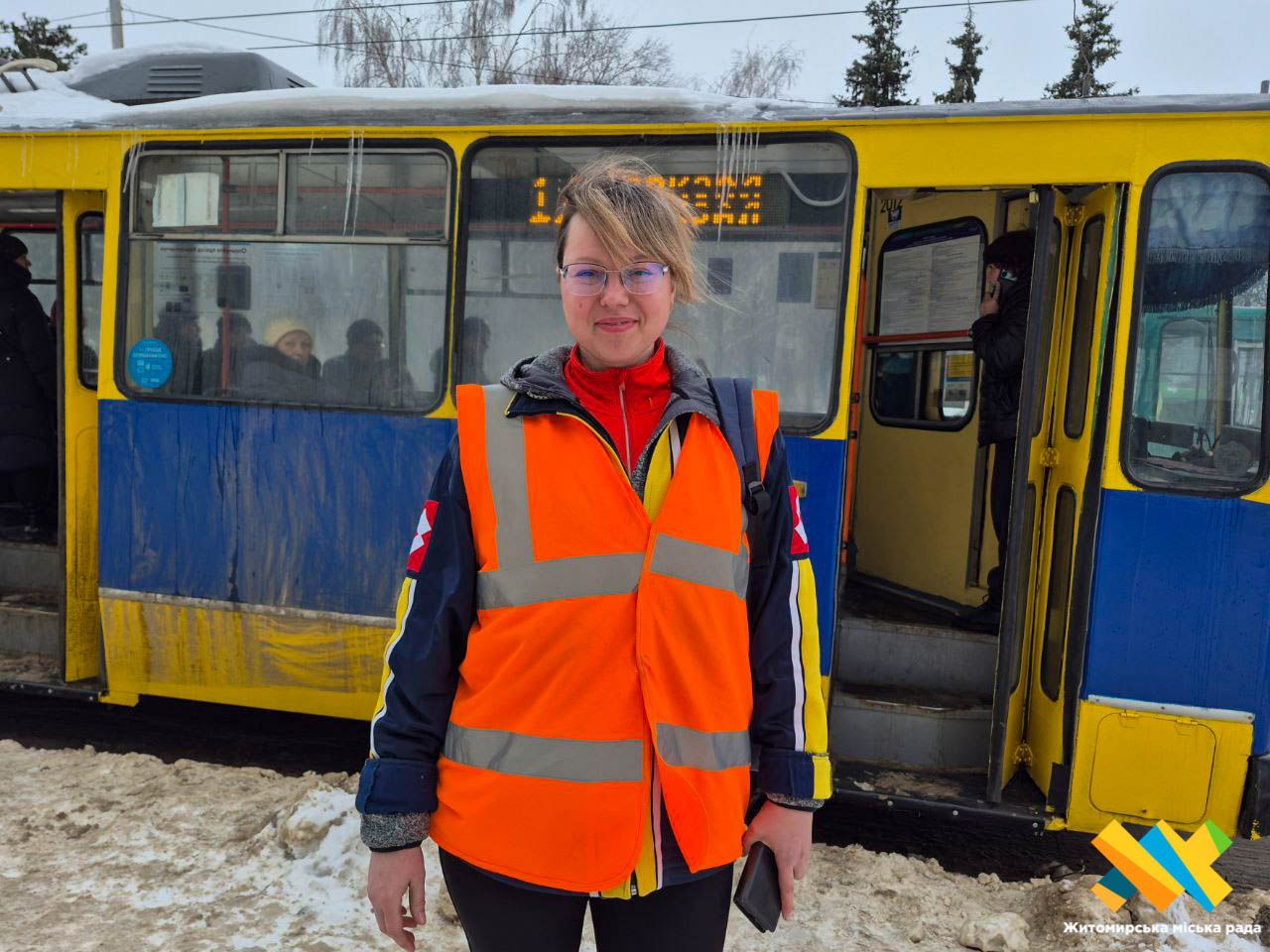 "Хвилювання в перші дні — це нормально. Ця робота вимагає максимальної уважності та зосередженості", — говорить водійка-інструкторка з 20-річним досвідом Ірина Мартиненко підтримує стажистку, у якої досвіду кермування електротранспортом ще немає. Однак є мета і бажання, а це не менш важливо для руху вперед.