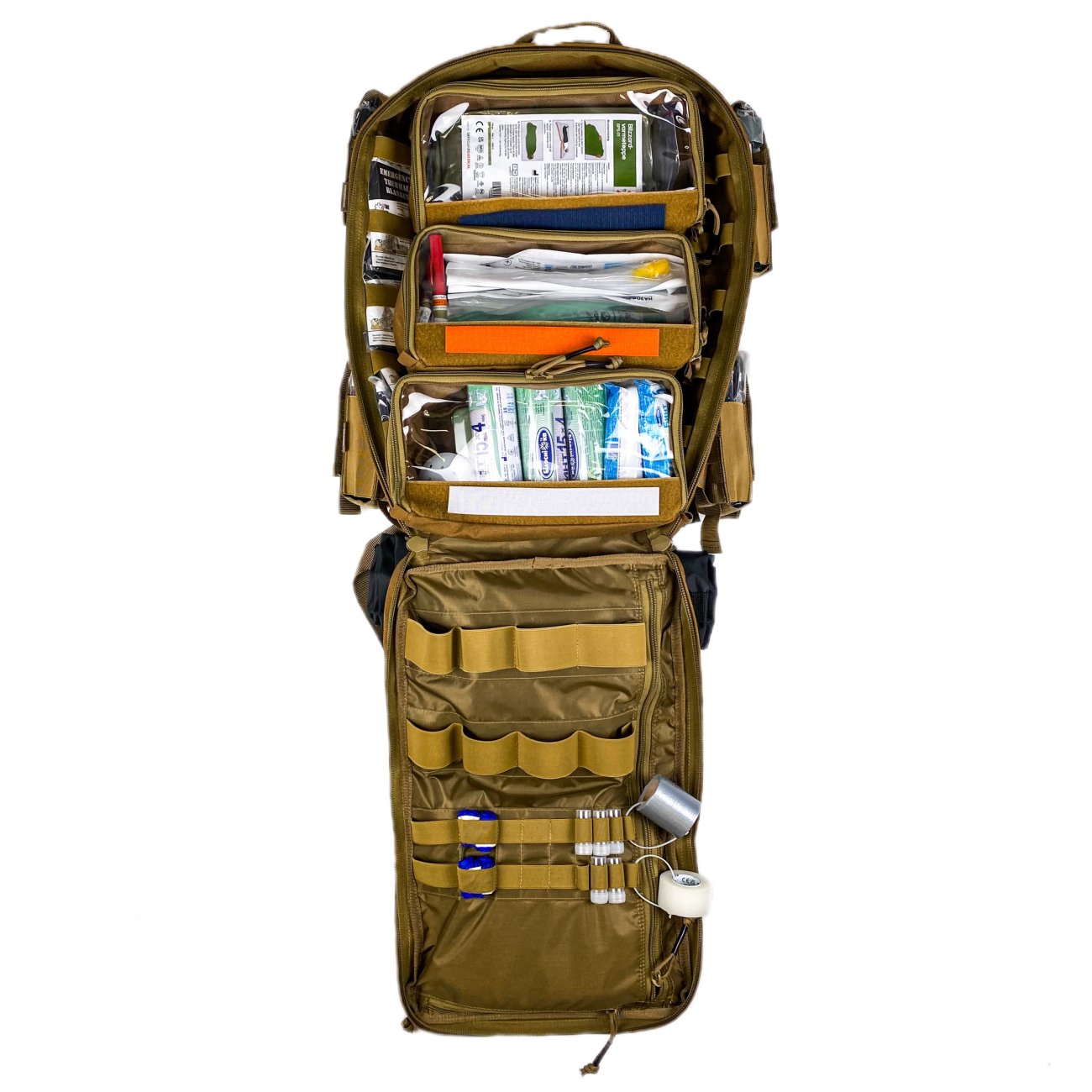 Євакуаційна команда може працювати по-різному: короткий підхід до пораненого і швидкий вивіз, тривала евакуація складним рельєфом, транспортування на авто або бронетехніці, передача через кілька проміжних точок. Тому медичний рюкзак евакуаційної команди не формується за принципом “чим більше, тим краще”. Він має бути достатнім, але мобільним. Надлишок ваги знижує швидкість та безпеку.